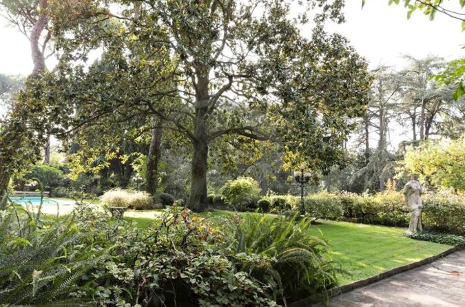 Ogród jest o wielkiej powierzchni – 2000 m2 Jednak nie warto zapominać, że willa znajduje się w centrum Rzymu w parku Stara Apfia (via Apfia Antica).