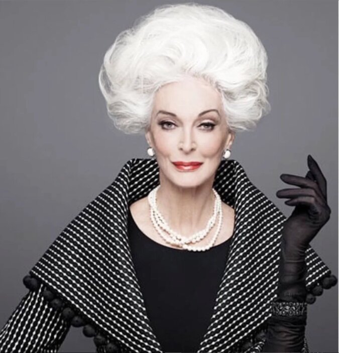 Ale dzięki Normanowi Parkensonowi modelka wróciła do świata mody, a srebrne włosy stały się jej znakiem rozpoznawczym. To był znak, że wpływ lat jest bezsilny nad kobietą i nie ma sensu ukrywać to naturalnymi odcieniami włosów i odmładzać się. Następnie stało się to jej znakiem rozpoznawczym!