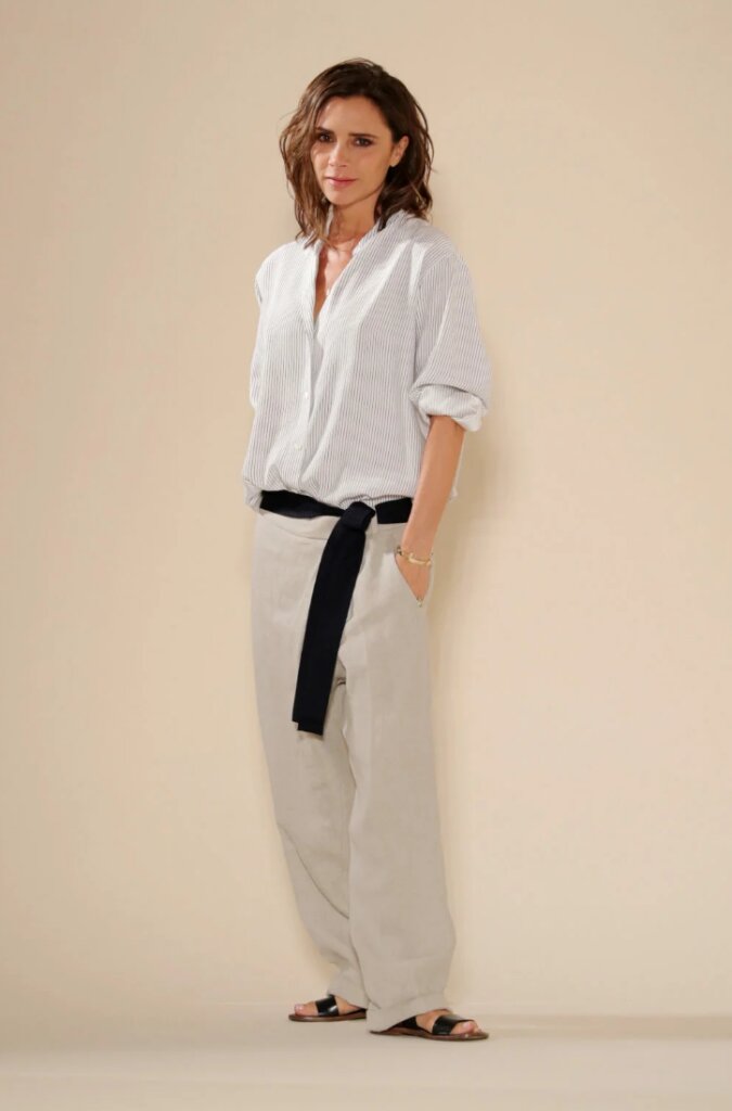 Dziś Victoria Beckham nazywana jest „nową Jil Sander”: woli powściągliwe odcienie. Wśród ulubionych rzeczy są sukienki koszulowe, gładkie golfy, spódnice midi i oczywiście garnitury.