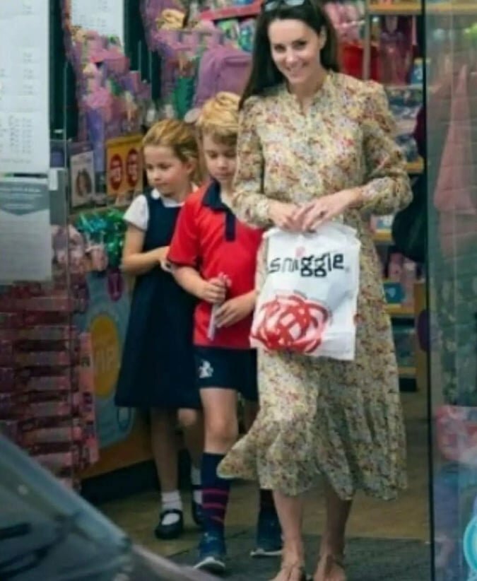 Paparazzi udało się zrobić zdjęcia księżnej z dziećmi w zwykłym sklepie papierniczym. Kate miała na sobie zwykłą sukienkę, która doskonale podkreślała jej piękną sylwetkę. Dzieci były ubrane w szkolne mundurki.