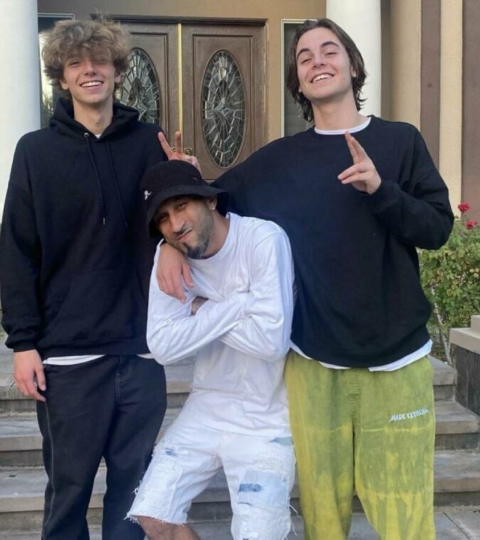 Młodzi chłopaki na zdjęciu przytulają rapera, stojącego przy wejściu do domu. Obaj synowie Britney okazali się dość wysocy, najwyraźniej odziedziczyli wzrost po ojcu. Sean i Jayden wyglądają prawie jak bliźniaki: główna różnica między chłopcami polega na ich fryzurach, jeden z nich ma bujne kręcone włosy.
