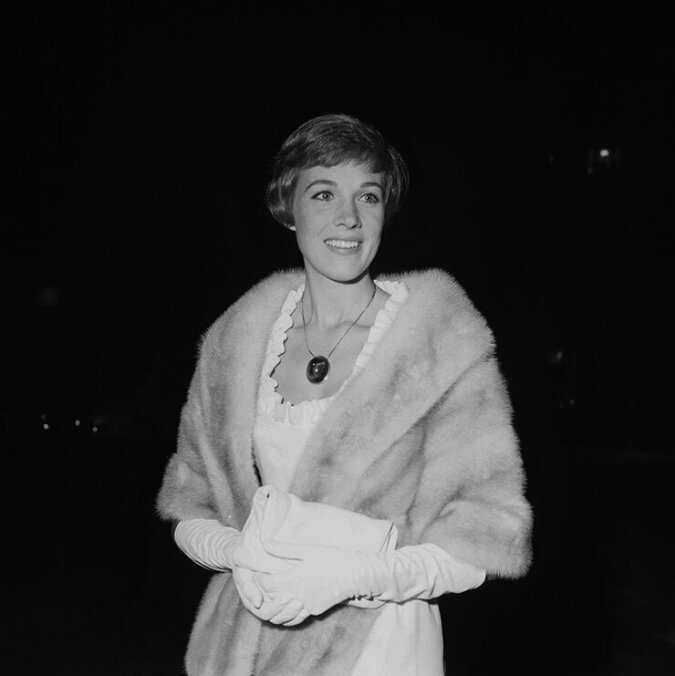 Aktorka Dźwięków muzyki wygląda tajemniczo na premierze filmu w 1962 roku.
