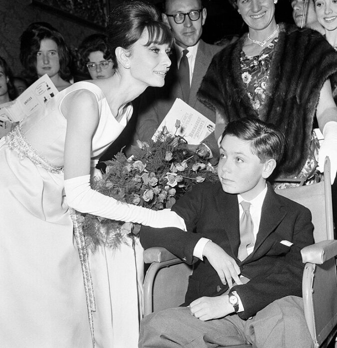 Aktorka wita młodego fana na premierze filmu Śniadanie u Tiffany'ego w 1961 roku.