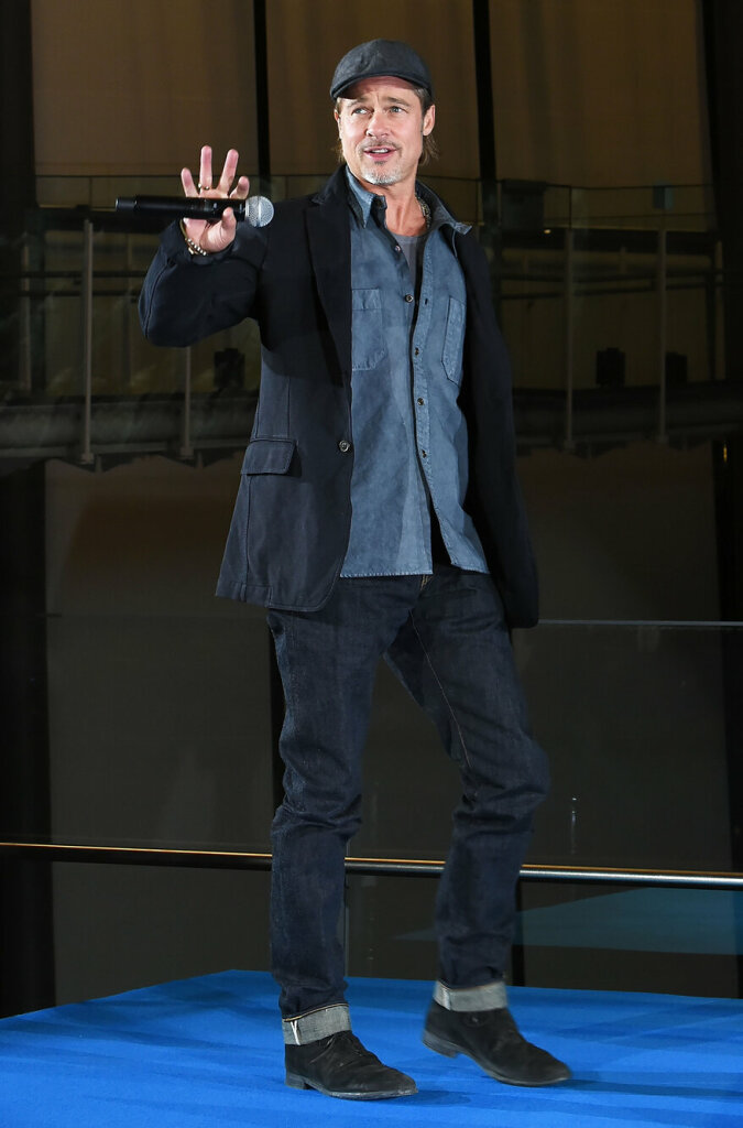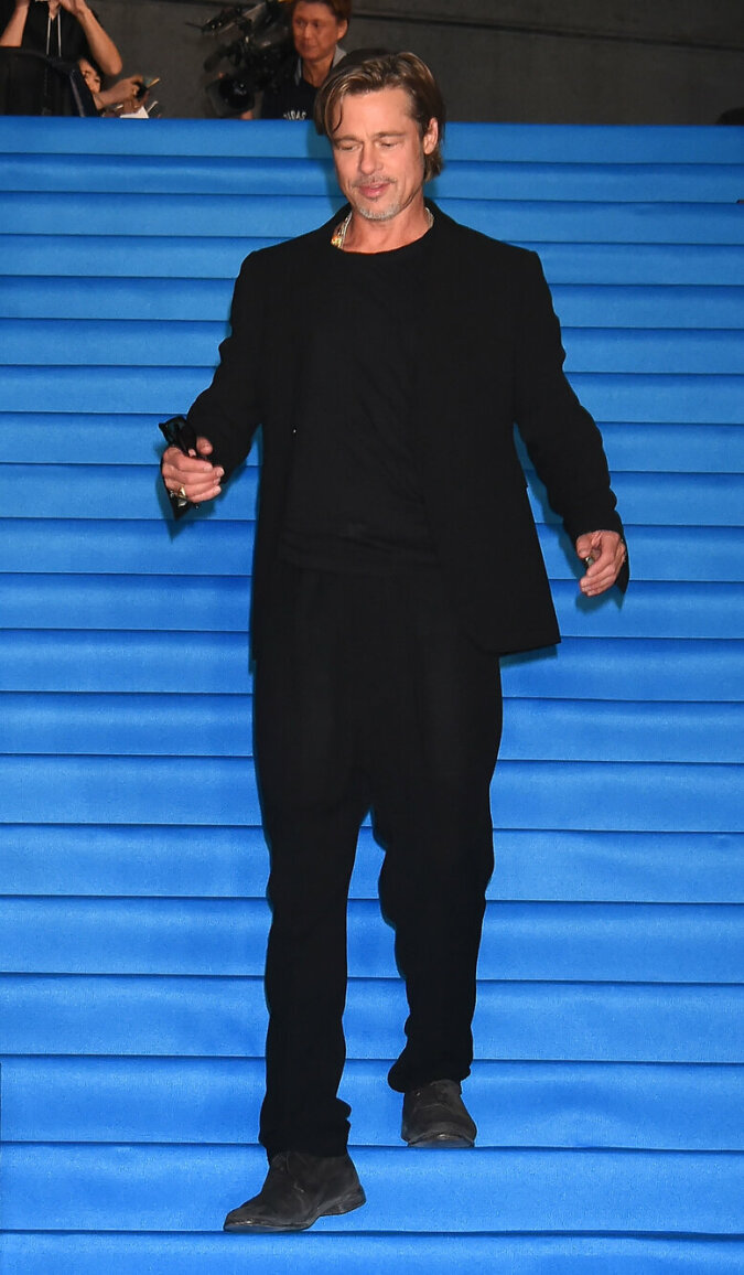 Jeśli chodzi o wydarzenia, na których trzeba nie tylko pozować fotografom, ale też poruszać się i komunikować z publicznością, Pitt od razu stawia na wygodę: jego garnitury stają się bardziej miękkie, spodnie ustępują miejsca dżinsom.