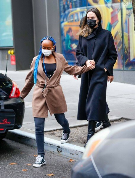 A teraz Angie wyszła na spacer ze swoją najstarszą córką, Zaharą. 8 stycznia skończyła 17 lat. Być może na cześć swoich urodzin dziewczyna postanowiła zmienić swój wizerunek i spleść niebieskie długie warkocze. Wygląda jaskrawo i ekstrawagancko.