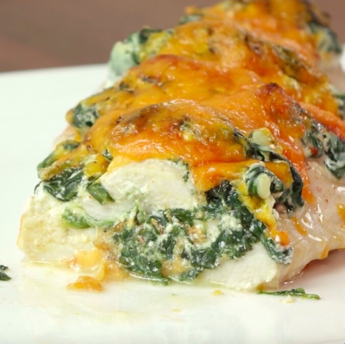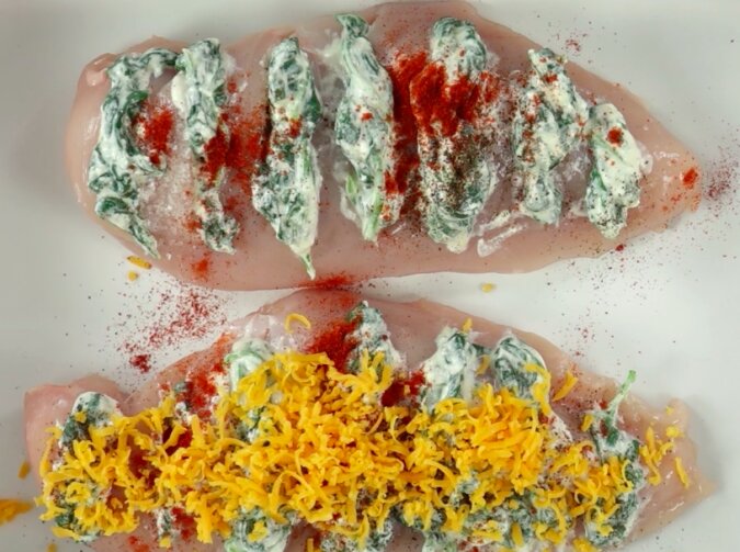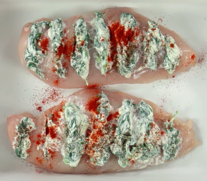 Jest to przepis na filet z kurczaka à la Hasselback – użyjemy szpinaku i sera do nadziewania piersi. Ma apetyczny wygląd, ale możesz mi uwierzyć, że smak jest dosłownie genialny.
