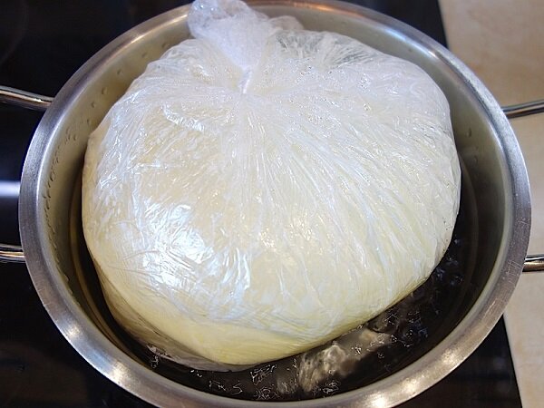2. Wlej omlet do woreczka, zawiąż go. Połóż worek z omletem do jeszcze jednego worka. Gdy woda się zagotuje, wrzuć do niej woreczek na 30 minut. Za pół godziny omlet będzie gotowy!