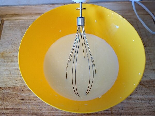 1. Dobrze ubij trzepaczką 4 jajka, do lekko ubitych jaj dodaj 1 łyżeczkę śmietany oraz mleko. Możesz również dodać sól i warzywa, a także cukier, cynamon i szczyptę gałki muszkatołowej. Wiele możliwości dla osób twórczych!