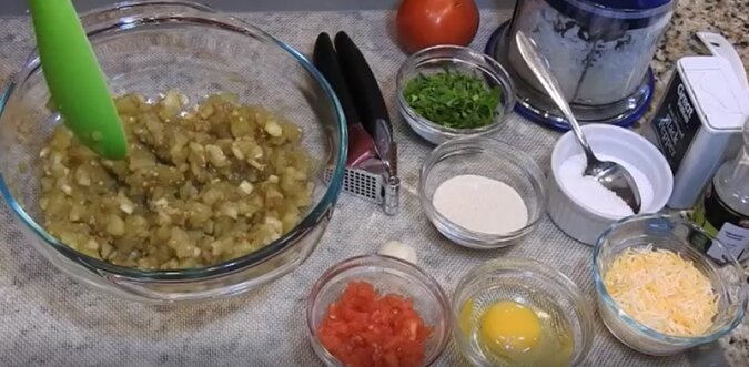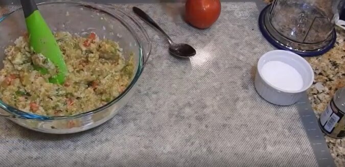 5. Teraz zmielonego bakłażana trzeba zagnieść. Jeśli konsystencja jest wciąż płynna, dodaj trochę czerstwego chleba.