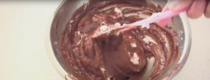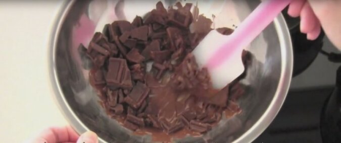 2. Należy połamać czekoladę na kawałki, a później roztopić ją z masłem w łaźni wodnej.