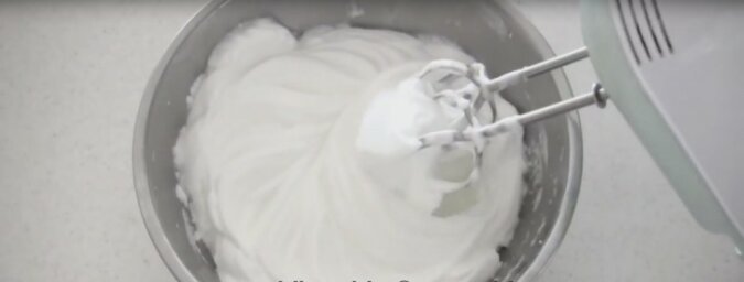 3. Następnie należy ubić białka za pomocą miksera, aż powstanie gęsta masa.