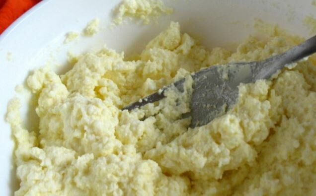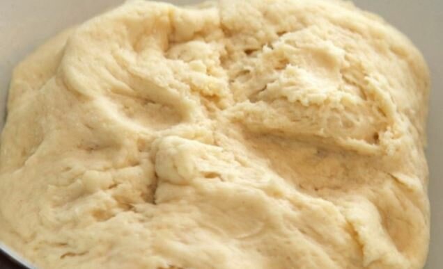 Musimy rozetrzeć i wymieszać żółtka i twaróg z dodaniem miękkiego masła, soli, cukru i cukru waniliowego. Dalej dodajemy przesianą mąkę wraz oraz sodę. W razie, gdyby twaróg był zbyt wilgotny, dodajemy mąkę tak, aby otrzymać elastyczne wilgotne ciasto.