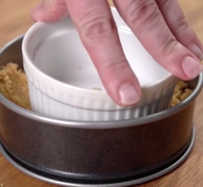 3. Zrób ciasto z masy ciastkowej używając formy, delikatnie zmiażdż go.
