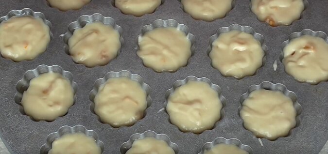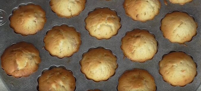 Nasmaruj naczynie do pieczenia małym kawałkiem masła, a następnie włóż do niego ciasto, aby zostało wypełnione do 2/3 wysokości. Babeczki należy piec przez około pół godziny w piekarniku nagrzanym do 180 stopni. Gotowość należy sprawdzać za pomocą drewnianego patyczka lub szpikulca.