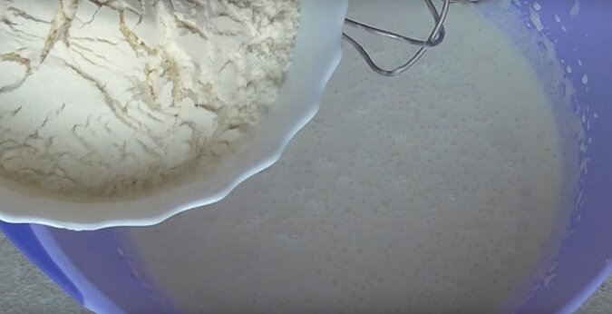Teraz dodaj sodę i mąkę, a następnie znowu wymieszaj za pomocą miksera.