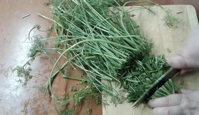 Dobrze myję łodygi kopru, suszę je i siekam nożem.