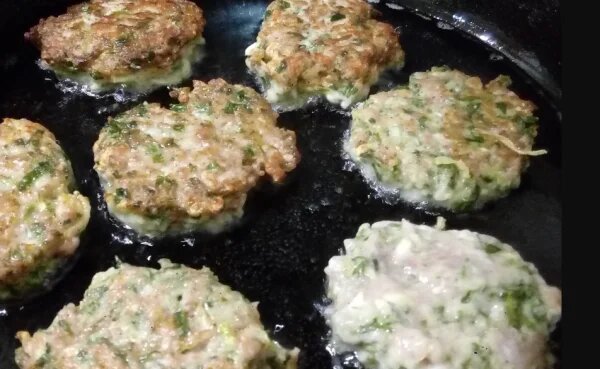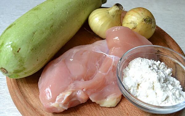 Teraz należy wymieszać cukinię, cebulę, czosnek, mięso mielone, a także dodać jajka i małymi porcjami mąkę.