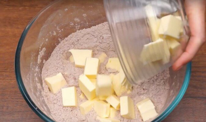 Potem do mąki dodaj zmiękczone masło i zmiel wszystko na małe okruchy.