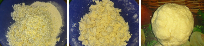 Następnie należy wsypać do miski mąkę, a później wymieszać mąkę ze śmietaną oraz masłem startym na grubej tarce.