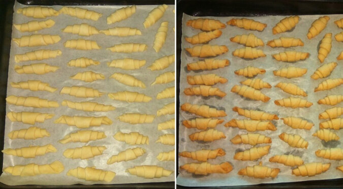 Następnie rogaliki należy rozłożyć na pergaminie i wstawić do lodówki na 15 minut. Jeśli nie wykonasz owej czynności, rogaliki nie będą kruche.