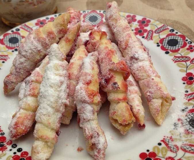 Tutaj każde nadzienie będzie odpowiednie: dżem, orzechy, skondensowane mleko, marmolada, rachatłukum, a także suszone owoce... Nawiasem mówiąc, ciasto nie będzie zawierało cukru, a to oznacza, że nadzienie może być niesłodzone.