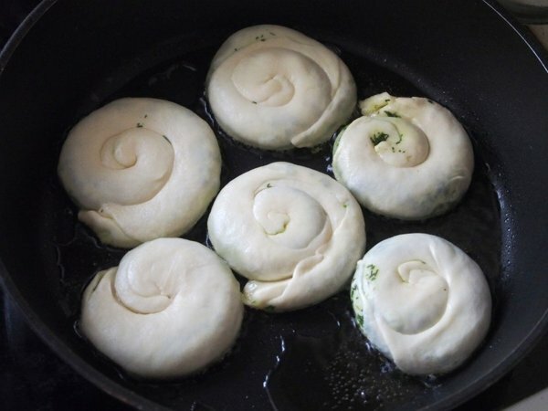5. Lepioszki smażyć z obu stron na patelni posmarowanej oliwą z oliwek (1 łyżka), aby miały złoty kolor.
