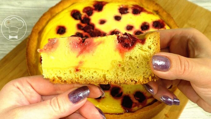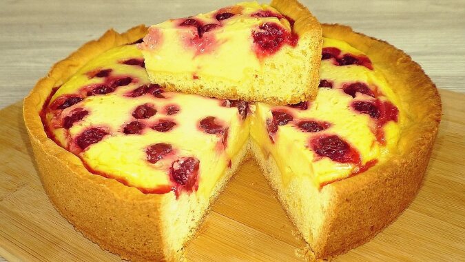 Śmietankowe nadzienie jest umiarkowanie słodkie, a kwaśne jagody nadają szczególnej pikanterii, ciasto po prostu rozpływa się w ustach, pamiętaj, aby spróbować.