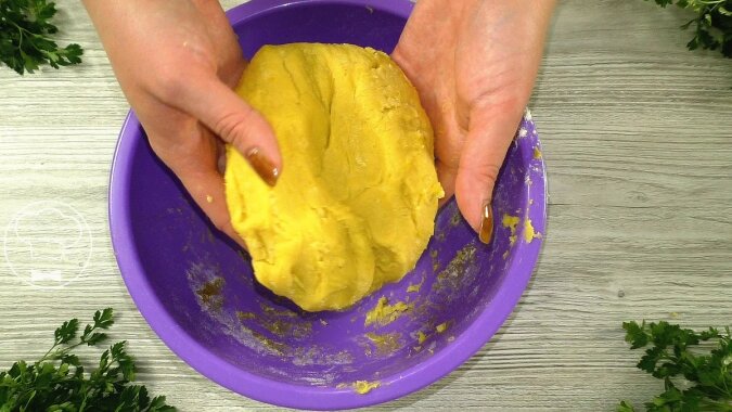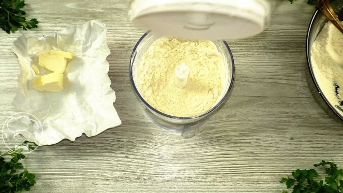 Nie trzeba miesić ciasto przez długi czas, w przeciwnym razie masło zacznie się topić od ciepła rąk, ciasto zostanie zakręcone i okaże się nie kruche, a dość sztywne.