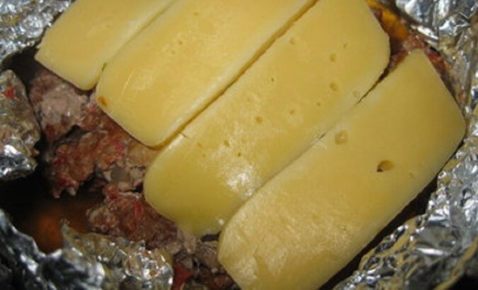 6. Po upływie określonego czasu pieczenia wyjmij mięso z piekarnika. Następnie rozłóż plasterki sera tworząc górną warstwę i ponownie włóż mięso do piekarnika na kolejne 5 minut. Można też urozmaicić przepis, dodając ulubione przyprawy, warzywa lub orzechy.