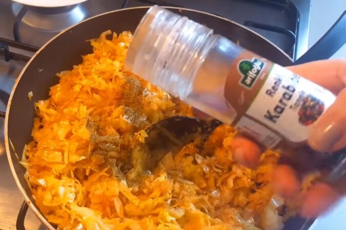 Teraz dodaj posiekaną kapustę i smaż na dużym ogniu, ciągle powoli mieszając.