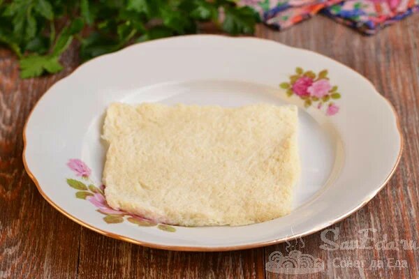 7. Na jeden placek użyjemy 2 kromek chleba. Wtedy placki będą średniej wielkości. Jeśli chcesz, to zrób każdy placek z 1 kromki, otrzymasz wówczas 12 małych placków. Wlewamy mleko do miski, zanurz kromkę chleba w mleku i dobrze ściskamy między dłoni. Rozkładamy na talerzu.