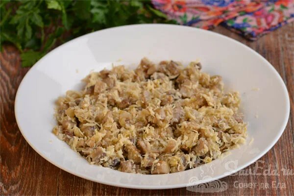 5. Dobrze mieszamy, a pyszne nadzienie jest gotowe. Te placki można smażyć z dowolnym nadzieniem. Dobrze się sprawdzają ziemniaki, zielona cebulka i jajka.