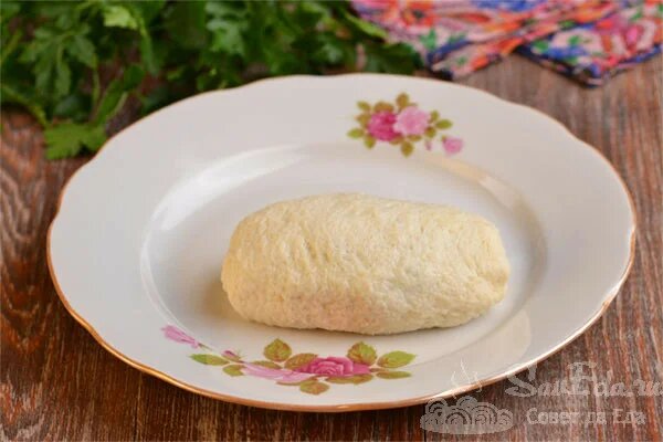 10. Bierzemy wszystko w jedną dłoń i palcami uformujemy ciasto. Aby było schludnie, zamknij górę krawędziami dolnego plastra. Chleb po mleku staje się miękki i dobrze się kształtuje.