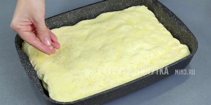 Ubijam jajko z mlekiem i smaruję ciasto na wierzchu. Posypuję sezamem (nie jest to konieczne).