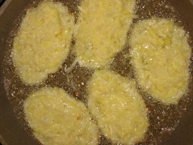 Formujemy rękami niezbyt grube kotlety o dowolnym kształcie i układamy ich na rozgrzanej patelni z olejem roślinnym.