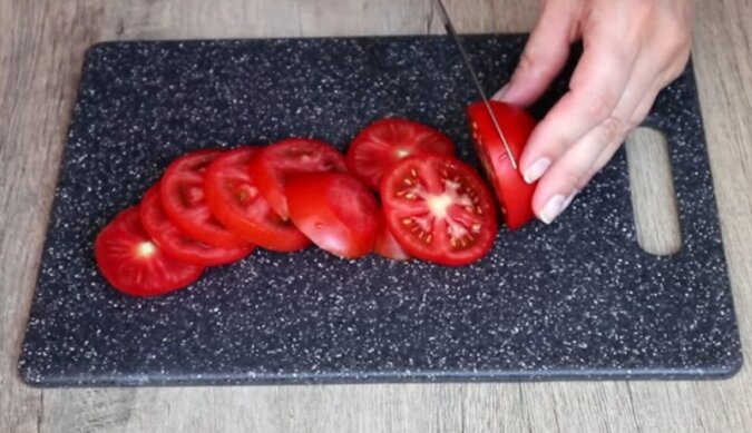 Pomidory pokrój w kółka.