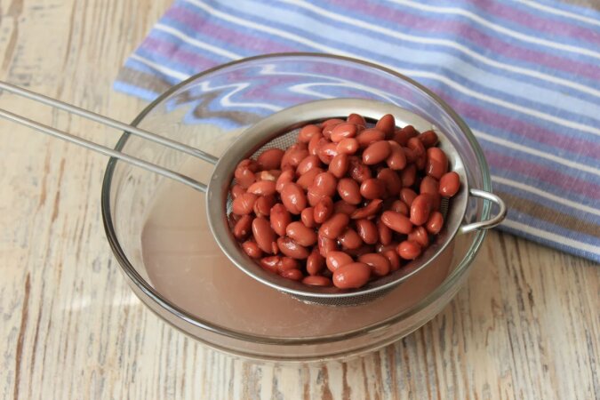 Przełóż fasolę z puszki na durszlak lub sito i przepłócz zimną wodą.