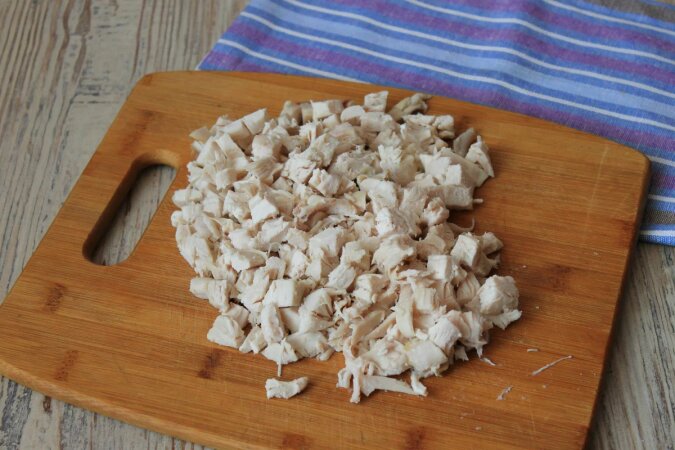- Gotowana (lub zapieczona) pierś z kurczaka – 300 g