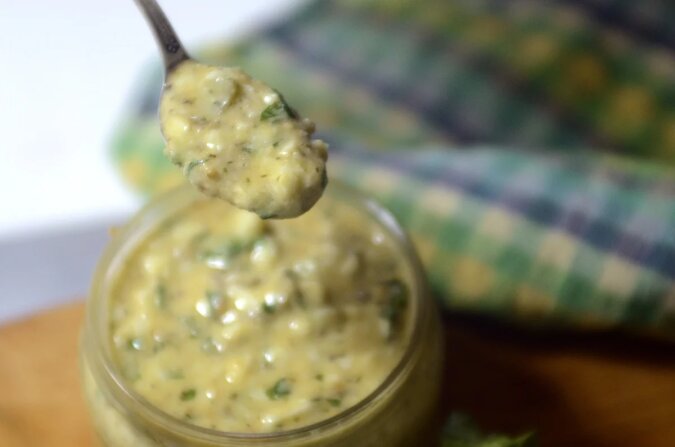 W rezultacie powstał bardzo gęsta pachnąca i aromatyczna pasta. Natychmiast zjedliśmy pół kontenera tej pasty ze świeżym białym chlebem. Mówią, że Francuzi używają go do chudego mięsa lub warzyw. Jest idealny do burgerów!