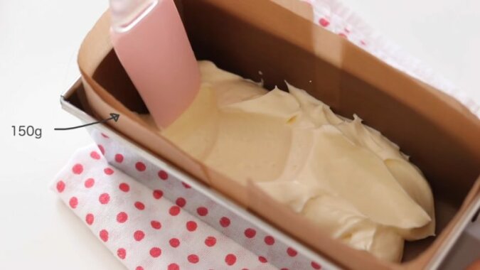 6. Blaszkę wykładamy papierem do pieczenia. 150 g powstałej mieszanki serowej przelewamy do foremki. Wkładamy do zamrażarki na 10 minut.