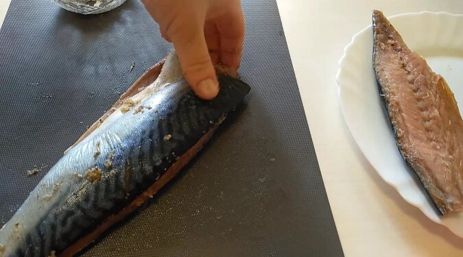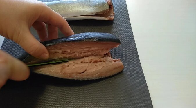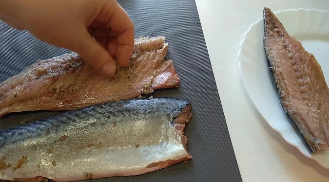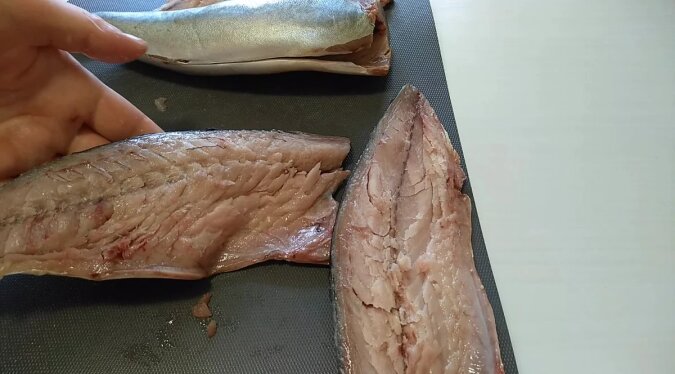 Ostrożnie podzieliłam na filety. Wyjęłam wszystkie ości.