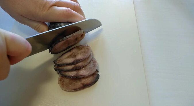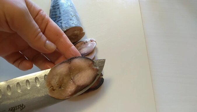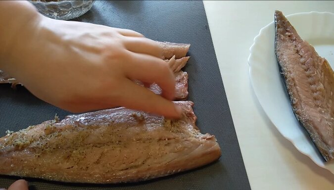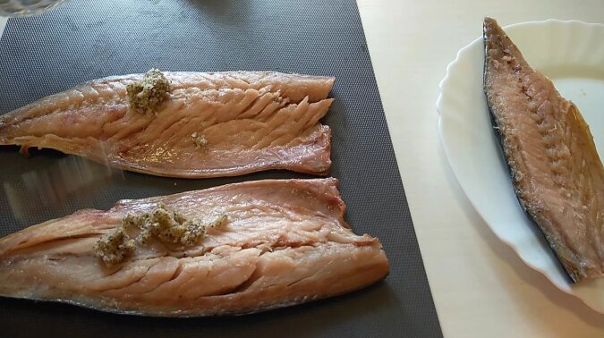 Wyciągam gotowe ryby z lodówki, daję 5 minut poczekać, kroję i podaję do stołu. Ryba okazuje się umiarkowanie słona, aromatyczna i bardzo smaczna, po prostu rozpływa się w ustach. Lubię taką rybę z chlebem i cebulą – jest niesamowicie smaczną. Spróbuj ją przygotować!
