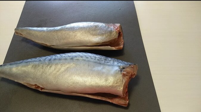 Wzięłam dwie świeże makrele, trochę rozmroziłam, wyczyściłam.