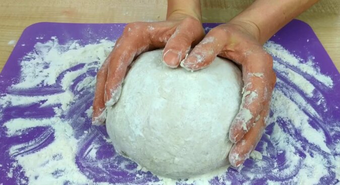 Wysyp na stół trochę mąki i rozprowadź ciasto. Posyp ciasto mąką. Uformuj prostokąt lub okrąg z ciasta (twój wybór). Złóż ciasto na pół, a następnie znowu na pół. Zawiń brzegi ciasta do środka tworząc okrągły placek. Cała procedura jest naprawdę prosta i szybka.