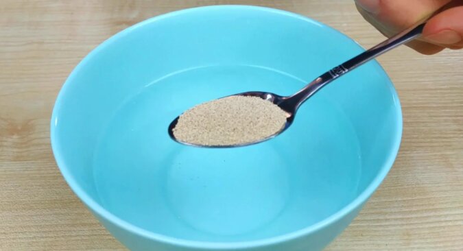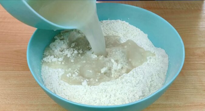 Do ciepłej wody dodaj suche drożdże (4 g), wystarczy to w zupełności. Wymieszaj i zacznij zajmować się mąką.