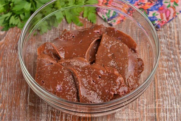 1. Kawałek wątróbki oczyścić od błonki i umyć. Możesz użyć wątróbki wieprzowej.