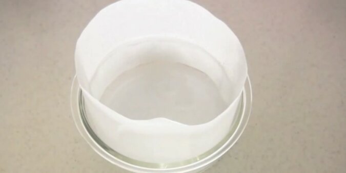 Tortownicę należy posmarować masłem, położyć na spód papier do pieczenia oraz przykryć zewnętrzną część tortownicy folią aluminiową.