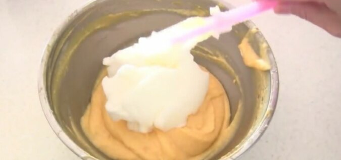 Następnie należy powoli dodać do tego białka, nie zapominając mieszać.