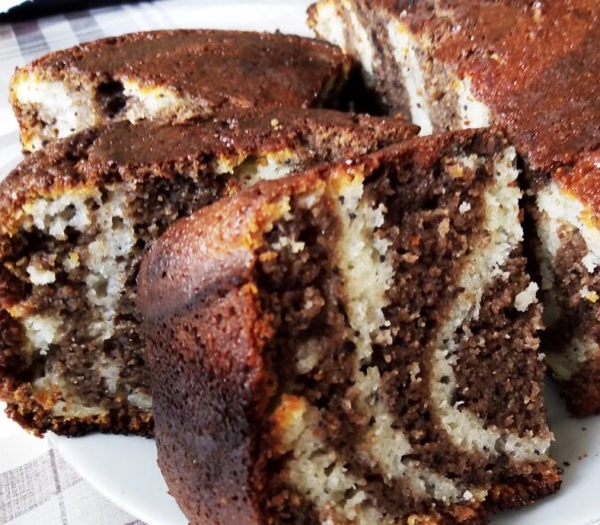 Oto mój gotowy deser. Zrobiłam mannik w formie i kolorach zebry, dodając tam kakao!