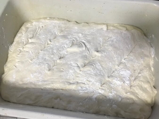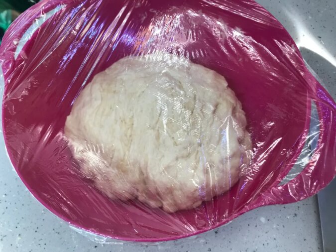 Gdy tylko ciasto urośnie (około 30 minut), otwórz je, ponownie ugnieć i pozostaw na kolejne 20-30 minut pod folią. Musi ono ponownie urosnąć.